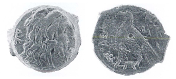 | ObverseInscription or printing placed on the obverse.: | Head of Heracles left, wearing Nemean lion skin headdress. In field, monogram. |
