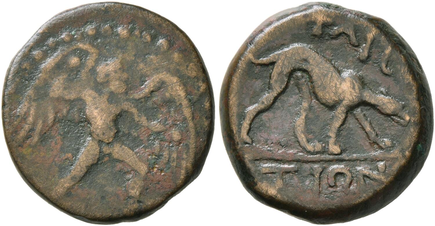 | ReverseInscription or printing placed on the reverse.: | ΦΑΙC-ΤΙΩΝ (Greek).Hound walking right, sniffing the ground |
