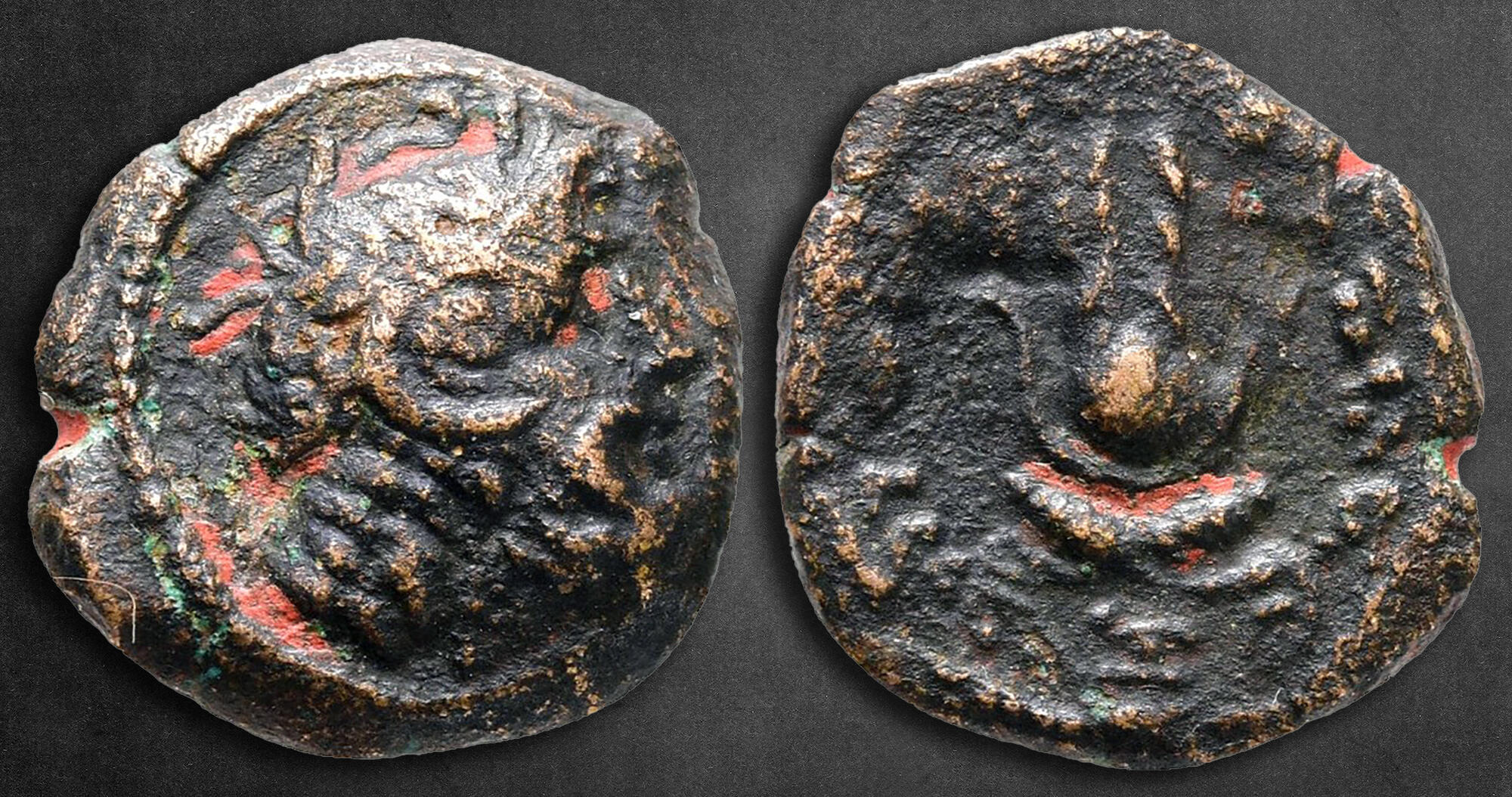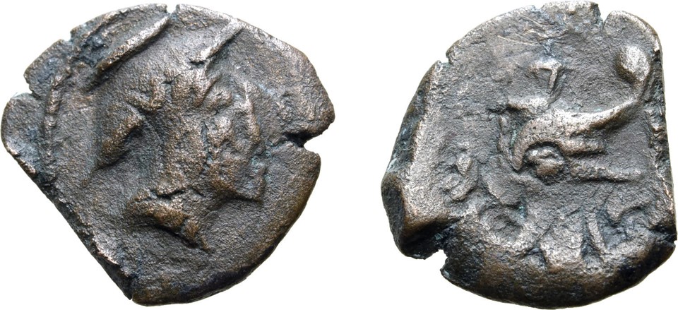 | ObverseInscription or printing placed on the obverse.: | Head of Hermes to right, wearing petasos | ReverseInscription or printing placed on the reverse.: | Prow to right |