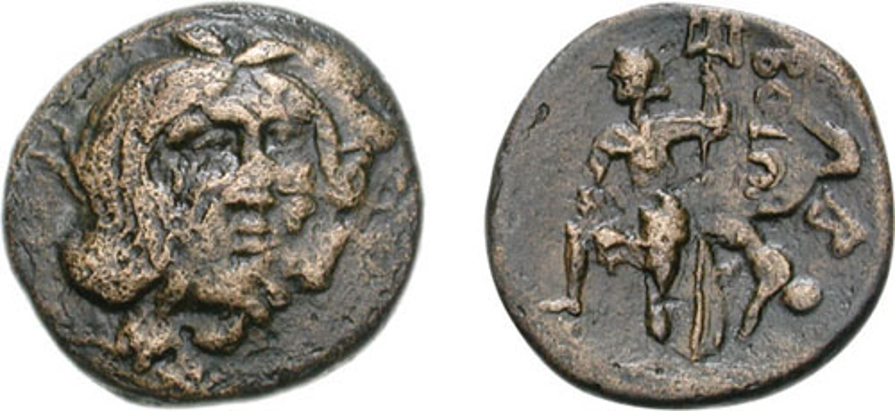 "Overstruck on Æ of Antigonos Gonatas of the type SNG Cop. 1214-1221, with much of the undertype showing"