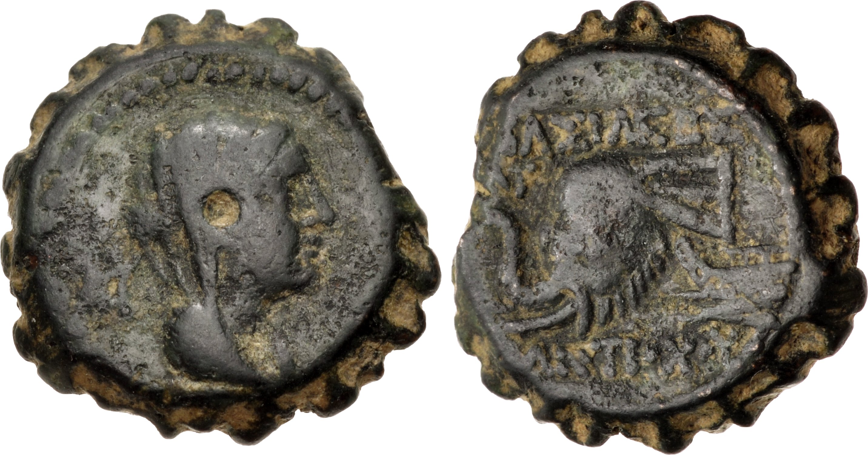 | ObverseInscription or printing placed on the obverse.: | Veiled and diademed bust right of Laodike IV | ReverseInscription or printing placed on the reverse.: | BAΣIΛEΩΣ ANTIOΧOY (Greek) Horned elephant's head left |