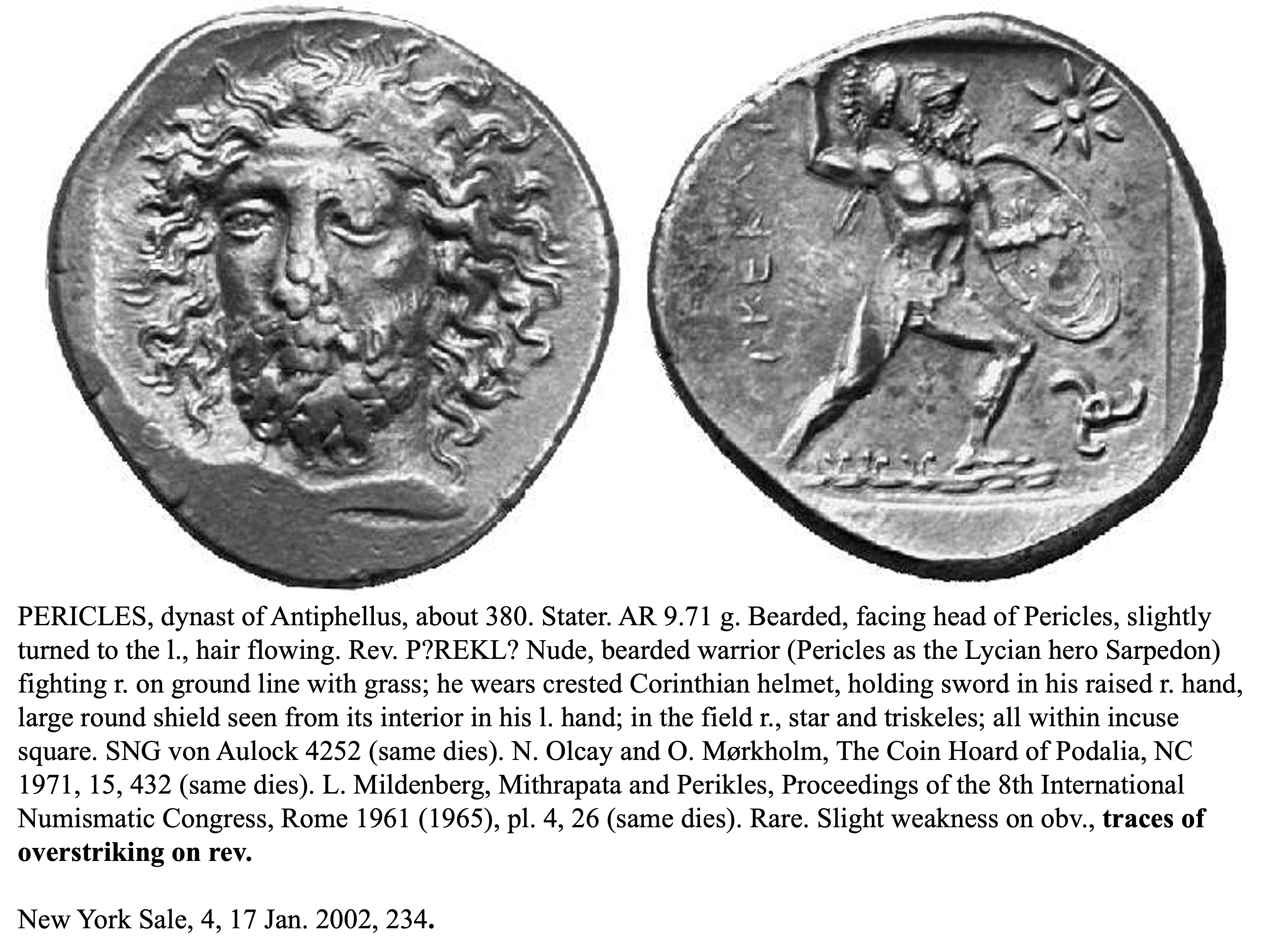 - (download) 2289 - Lycia (uncertain mint) (Perikles) (stater - Perikles-warrior).png . . 1,676 × 890 . . 2.61 MB . . Sonia Hanczack . . 13:15, 28 March 2024